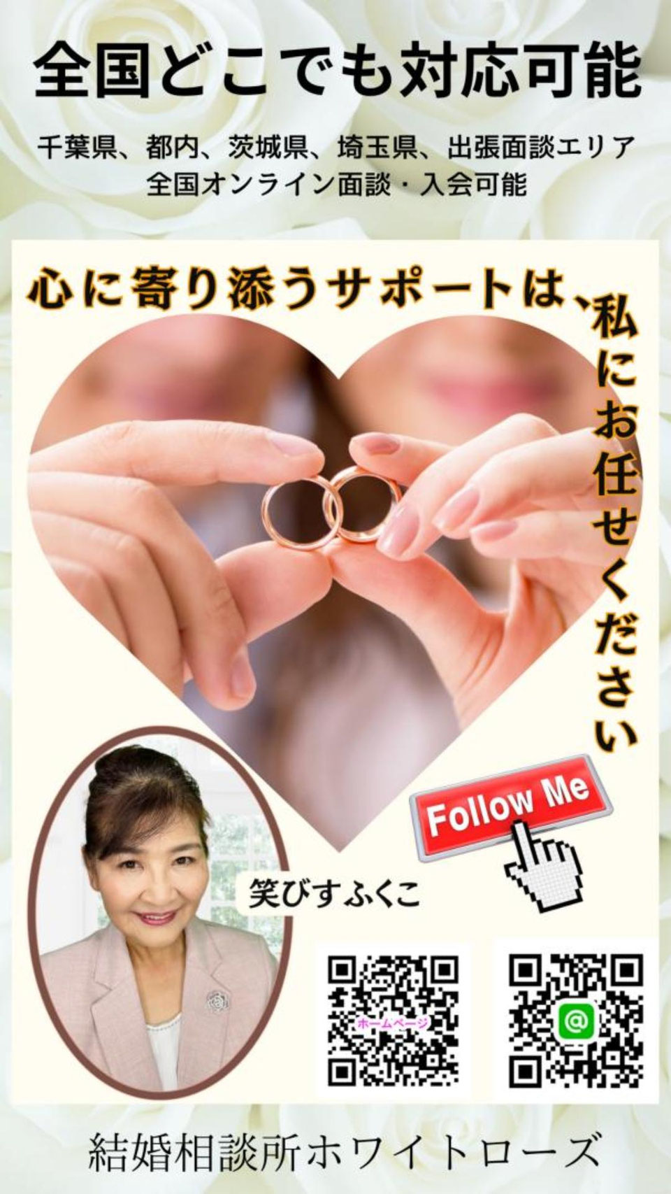 結婚相談所「ホワイトローズ」を運営している、笑びすふくこです。